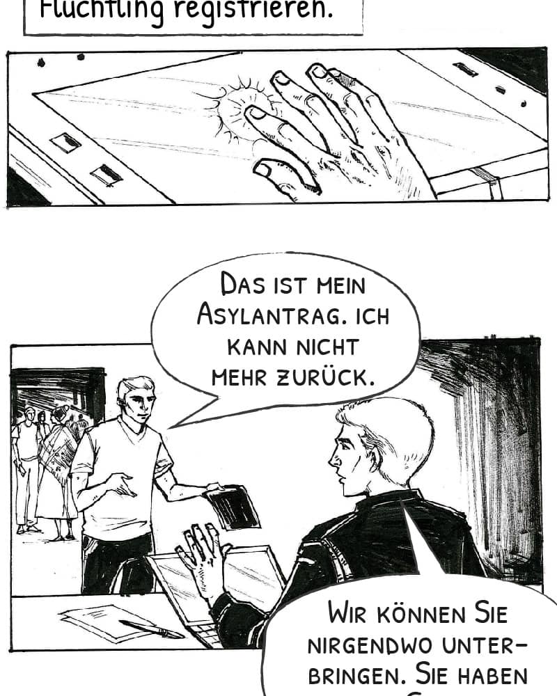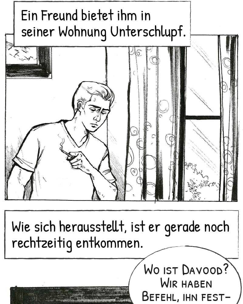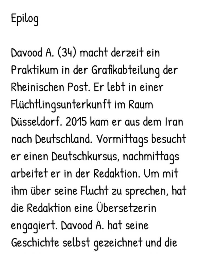 von Freunden unter, bevor er nach Europa floh. Für die RP zeichnet er seine